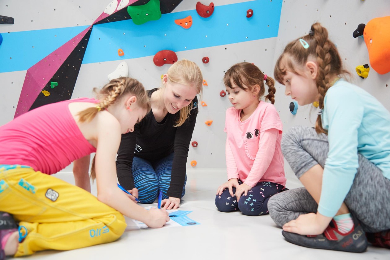 Bouldern und Klettern für Kinder mit Laufzettel in der Kinderwelt der Boulderwelt Dortmund